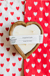 Fill your space with love and warmth with our Heart-Shaped 3-Wick Dough Bowl Candle. Expertly crafted with an eco-friendly 100% Soy Wax, this romantic candle features a rustic, reusable wooden dough bowl shaped like a heart. Perfect as a centrepiece for weddings, anniversaries, or simply to elevate your home décor, this candle provides an even, clean burn for up to approx. 40 hours.