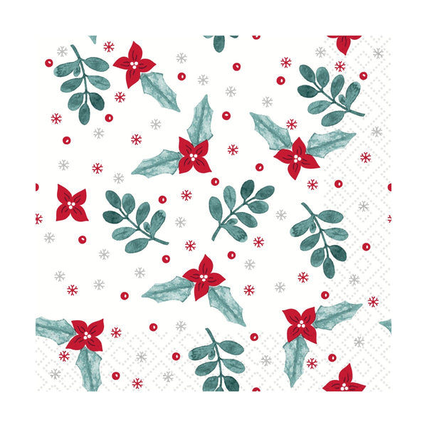 Lunch Napkin  Poinsettia Deco Description: Paper + Design tissue luncheon napkins printed in Germany, bleached without chlorine, 3-ply, 33 x 33 cm, 20 pieces per packet, 12 packets per box.