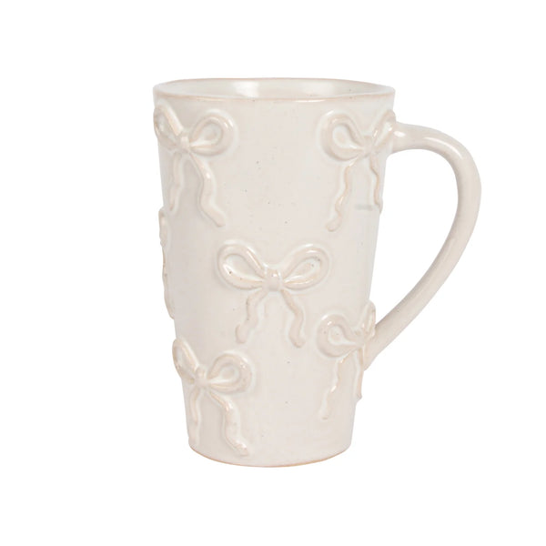 Bow Textured Mug Bow Textured Stoneware Tall Mug White Dimensions: 5 X 3.5 X 5 ENJOY YOUR HOLIDAY BEVERAGES WITH THESE CERAMIC MUGS FEATURING INTRICATE EMBOSSED DESIGNS. THE TEXTURED DETAILING ADDS...