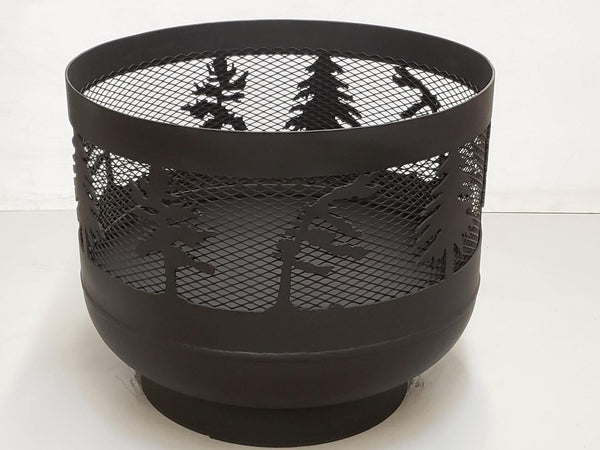 The Mini Fire Pit size is 24” in diameter, 18” in height and made of 3/16"-1/4" thick steel weighing 50-60 lbs. Offered in over 45 hand crafted designs to personalize your backyard space.
