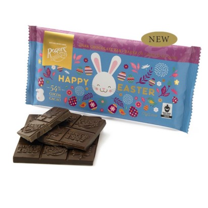 Our 54% dark chocolate bar wrapped with a new Happy Easter design. A perfect Easter basket stuffer!