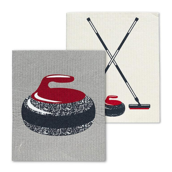 Think curling rocks? Then this set of two Curling-themed Dish Cloths is just what your kitchen needs! These biodegradable Swedish-made dishcloths featuring curling rocks and brooms are as durable as they are eco-friendly. Ultra-absorbent, each cloth replaces up to 15 rolls of paper towel, and lasts for up to 12 months. Perfect for the home, office or cottage. Other styles also available.
