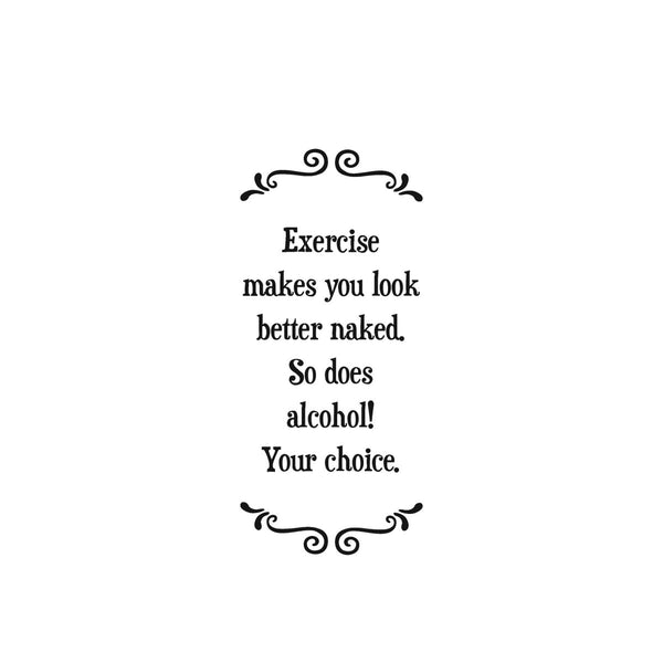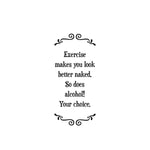 100% Cotton flour sack towel with black and white text: Exercise make you look better naked. So does alcohol! Your choice.