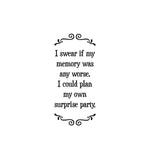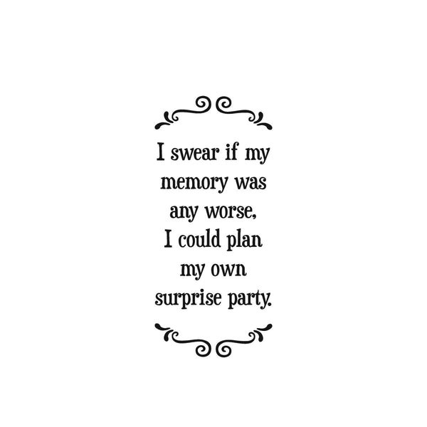 100% Cotton flour sack towel with black and white text: I swear if my memory was any worse, I could plan my own surprise party.