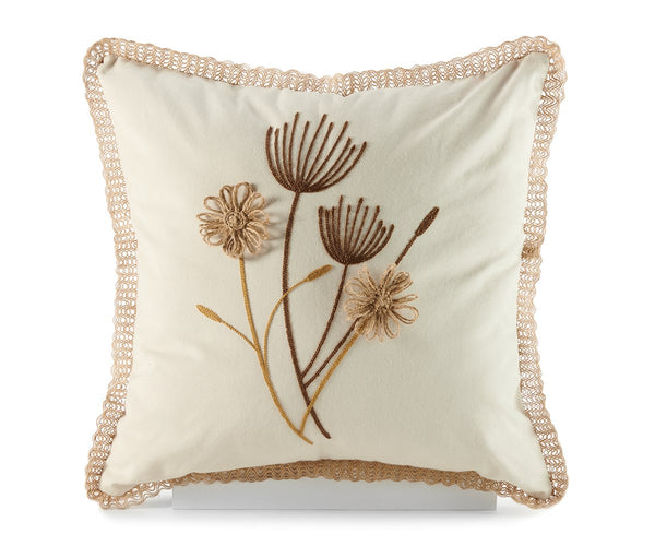 Cream Pillow with Floral Design Bring new life to any room with this beautiful textured throw cushion detailed with flowers in hues of natural, cream and brown. Spot clean only....