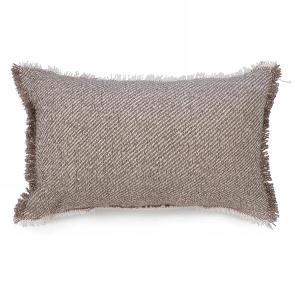 Fringed White & Brown Cushion DIMENSIONS : 19 X 12