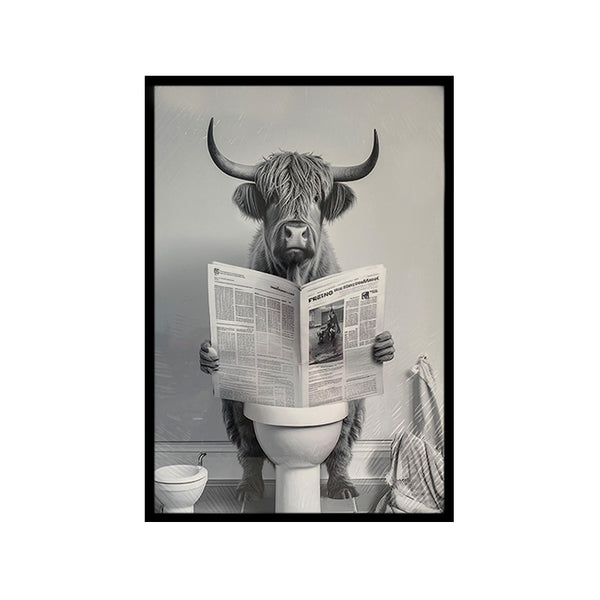 Highland Cow Reading Paper Wall art Size: 40 X 60 X 2.5 CM