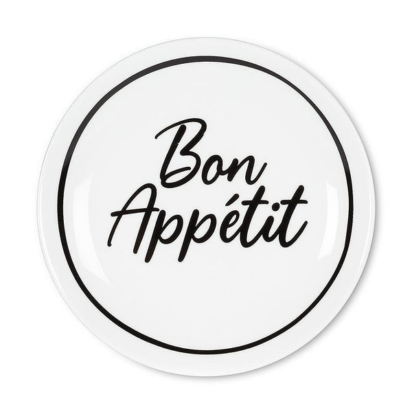 Appetizer Plate Bon Appetit Take the words right out of your guests' mouths with this fun "Bon Appetit" Appetizer Plate. Crafted of stoneware, this dishwasher and microwave-safe white plate with...