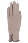 Aria Glove Grey The Aria glove is made of faux suede, polyester and Spandex. This style is self-lined, it has faux-fur at hem top, decorative buttons and a center vent...