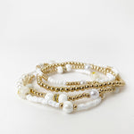 Beaded Cluster Bracelet 3 ROWS BRACELET ON ELASTIC WITH GLASS, FAUX PEARLS & METAL BEADS - GOLD - O/S