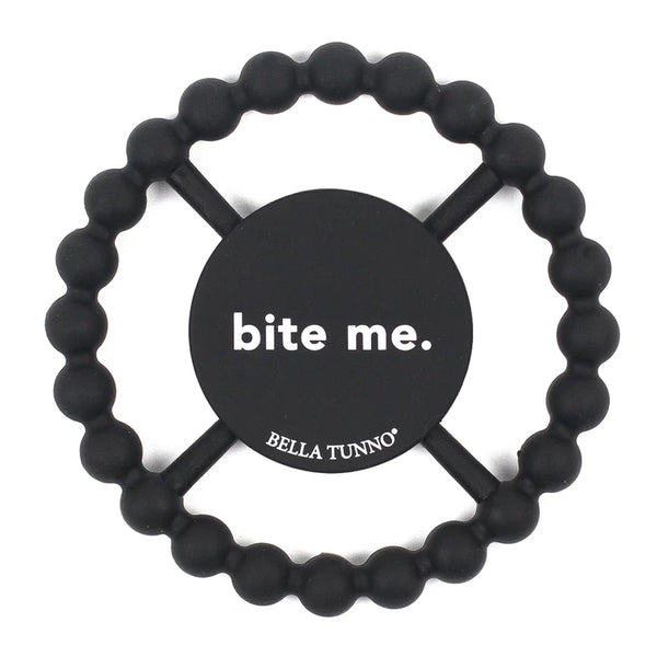 Bite Me Teether -Easy grip for little hands-Ring can be placed in the freezer for cold teething relief-Soft and resilient silicone design for extra relief-Affix to rocker or stroller with...