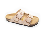 Chatham Big Buckle - Tan Nubuck Two strap sandal Two adjustable buckle closures Upper: Durable synthetic upper with soft backing Midsole: Anatomically shaped cork-wrapped Footbed: The contoured footbed mimics the...