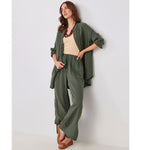 Cotton Gauze Pants with Buttons  Olive