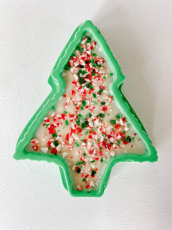 Fudge Tree Vanilla Candy Cane Our homemade vanilla fudge poured into a tree mould topped with candy cane! 115G (approx) mould 5.5 x 4"