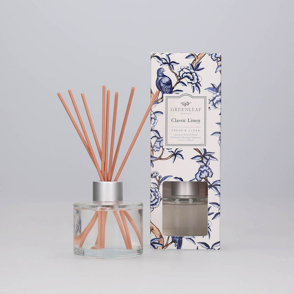 Greenleaf Classic Linen Reed DiffuserFresh, clean fragrance in a neutral glass container makes our reed diffusers the perfect complement to your everyday. Plus, our fiber reeds provide twice the fragrance...