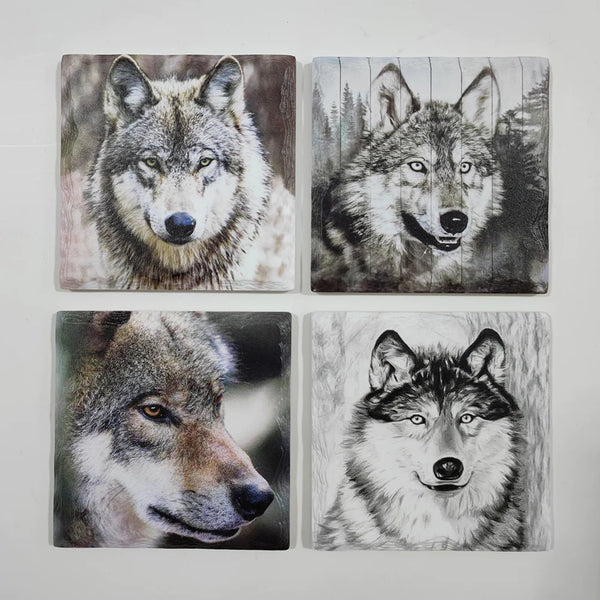 Grey Wolf Stone Coaster Set Dimension : 4 1/4"*4 1/4"
