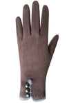 Ladies Aria Glove - Brown The Aria glove is made of faux suede, polyester and Spandex. This style is self-lined, it has faux-fur at hem top, decorative buttons and a...