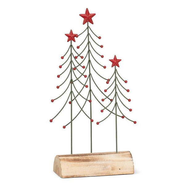 Add a simple flair to your holiday decor with Large Wire Trees on a Log Base. Featuring clean lines and a minimalist design, this 12 inch tree figure is perfect for tabletops, mantels, or entryways.