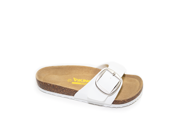 Louise Lg Buckle White Toe-loop sandal Two adjustable buckle closures Upper: Durable synthetic upper with soft backing Midsole: Anatomically shaped cork-wrapped Footbed: The contoured footbed mimics the shape of a...