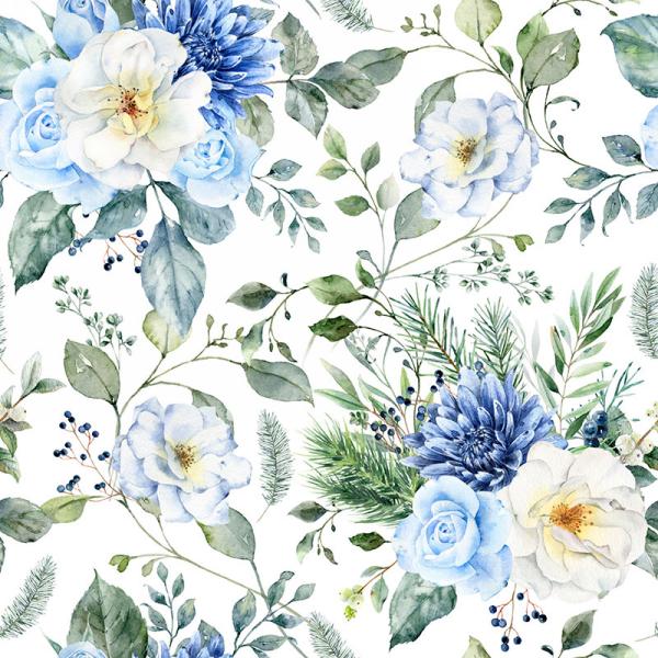 Lunch Napkin Blue & Floral Foliage 13 x 13