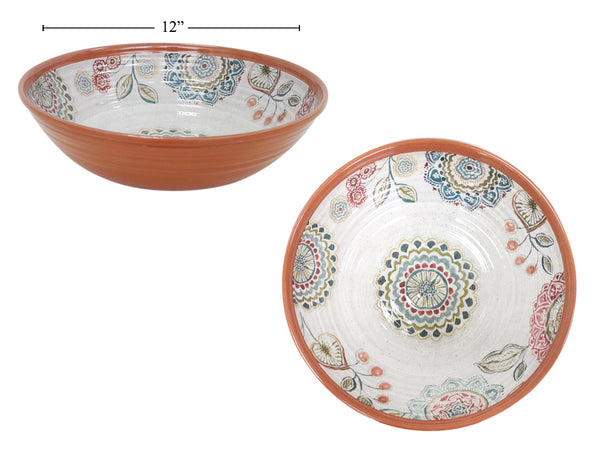 Floral Medallion Melamin Serving Bowl 12" D  Great for outdoor entertaining