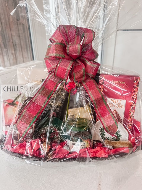 Merry & Bright Gift Basket Includes: Flis Wafers Laurieri Crackers Walkers Shortbread Gourmet Du Village Dip Mix Cookie Red Pepper Jelly Chocolate Waffle Cookie 2 x Holiday Pinch Bowls Decorative...