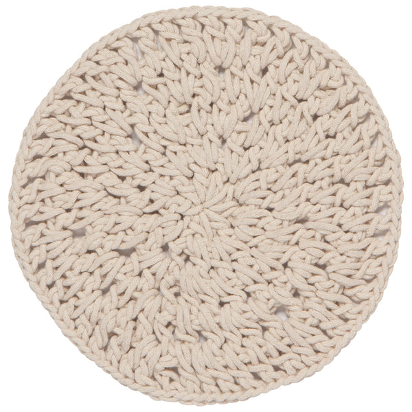 natural knot trivet Set a hot pot or pan down on a handmade knotted trivet. The thick cotton rope provides protection and durability while offering textural intrigue. Dimensions: Dia9inMaterial: 100%...