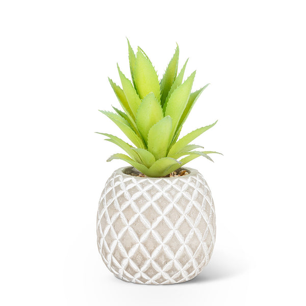 Artificial Succulent in Pineapple Planter  7" H  Green/Grey  Cement / Plastic
