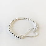 Silver Beaded Heart Bracelet BRACELET WITH SMALL METAL BEADS & WAVED HEART ON ELASTIC - GOLD & SILVER - O/S
