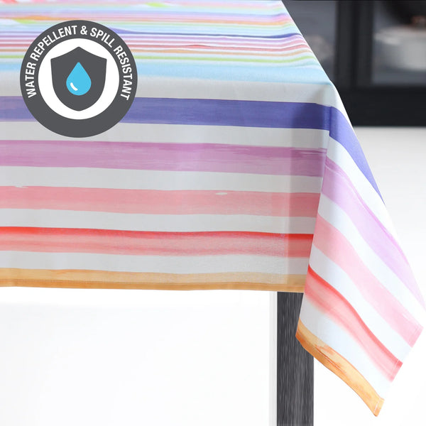 Water Color Stripes Water Repellent Table Cloth 60 X 90 Multi Dimensions: 60 X 90 THIS WATER REPELLENT TABLECLOTH IS CONSTRUCTED OF A DURABLE FABRIC THAT IS SPILL & STAIN PROOF....