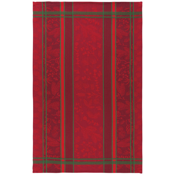 Sought after for its quality and uniqueness, this expertly woven Winterberry jacquard towel offers a sumptuous look and feel that's durable and soft. The Winterberry design, with delightful red berries and delicate evergreen branches, is interwoven into the yarn-dyed, 100% cotton fabric to create a thick, absorbent towel. Let the perennial beauty and reliable performance of this jacquard towel grace your kitchen for years of regular use.